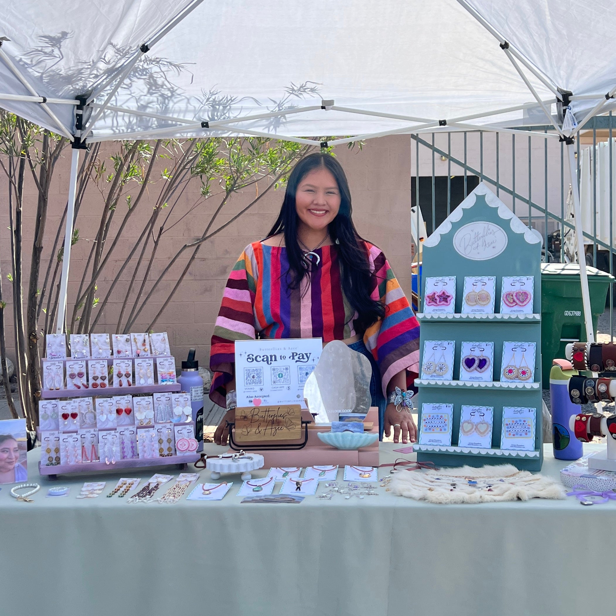 My name is Tommey (22 y/o), I am diné from Teesto, AZ but I grew up in Winslow, AZ & now living in Tucson, AZ! I am currently a student at the University of Arizona, dual majoring in Nutrition & Food Systems + Food Studies. I began beading in January 2020, I wanted to build my own collection of beadwork but didn’t have the funds to buy from artists (as I was in high school lol). So I started my own business to support other BIPOC+ businesses & myself through college.