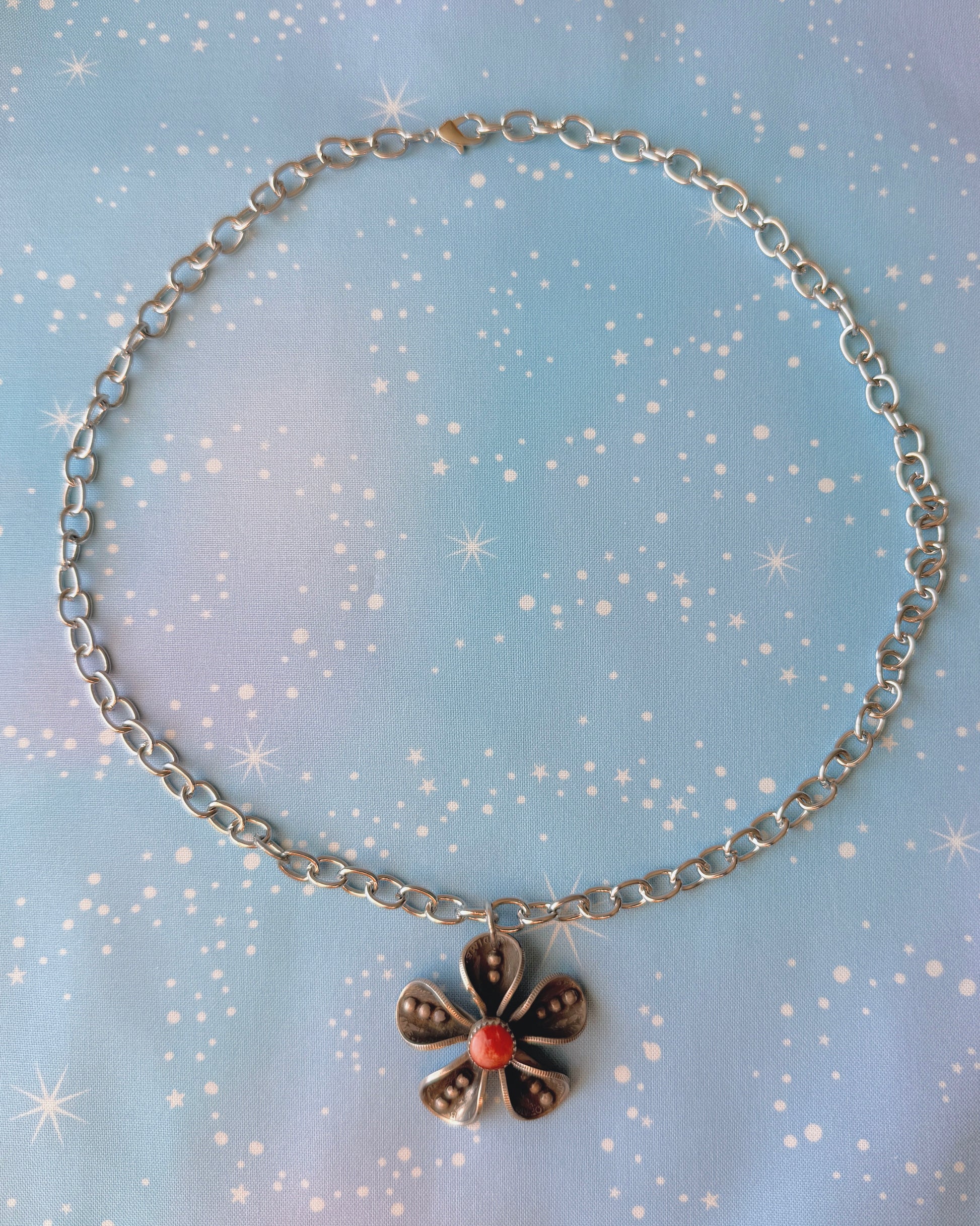 Floral pendant made from mercury dimes, accented with sterling silver ball details ✨